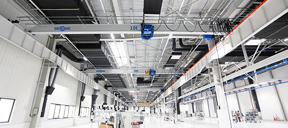 生產廠區(協成工廠)占地面積40000 多平方米,位于浙江嘉善國家級經濟開發(fā)區,生產車間完全按歐式起重機模塊化流水線生產布局,采用世界領先的德國起重機技術,生產工藝及產品完全符合ISO國際標準、中國國標、歐洲FEM、德國DIN、美國CMAA、英國BS、日本JIS等標準,年產起重機近千臺,主要生產雙梁橋式起重機、單梁橋式起重機、雙梁懸掛起重機、單梁懸掛起重機、門式起重機、半門式起重機、過跨起重機、多支點起重機、輕軌起重機、旋臂吊,特別是管樁起重機、潔凈起重機、造紙專用起重機、電廠起重機、全自動智能起重機、吊運熔融金屬專用起重機等產品深受客戶好評。